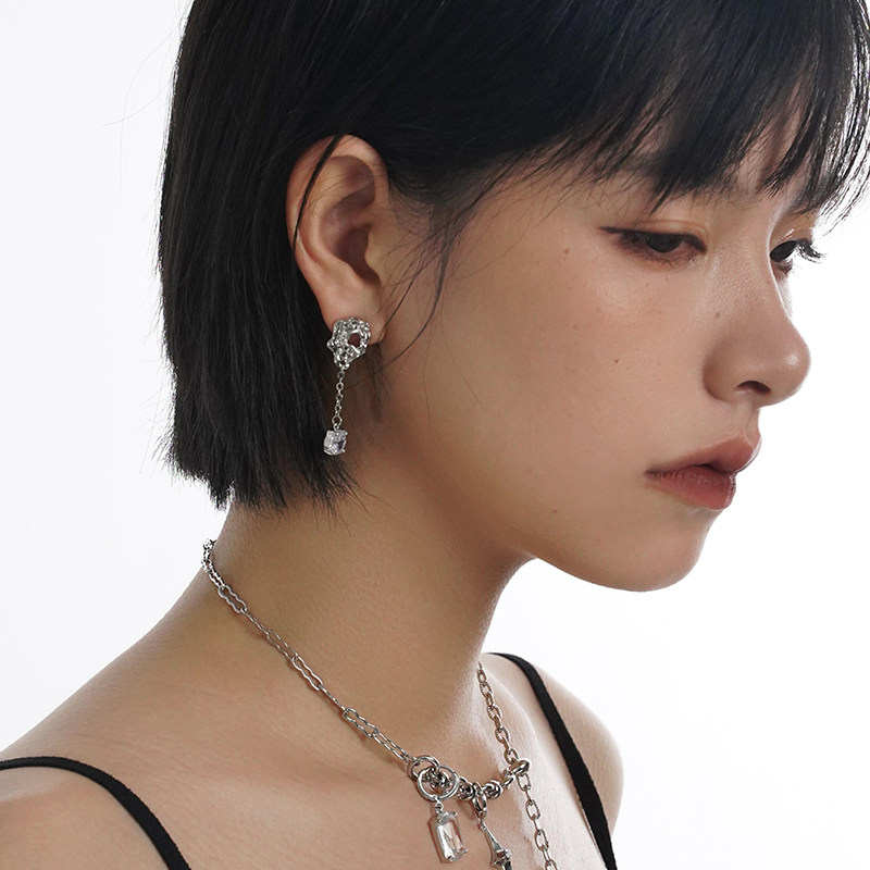 SUMIYAKI Irregular fold earrings AB asymmetrical original design earrings niche light luxury earrings female summer