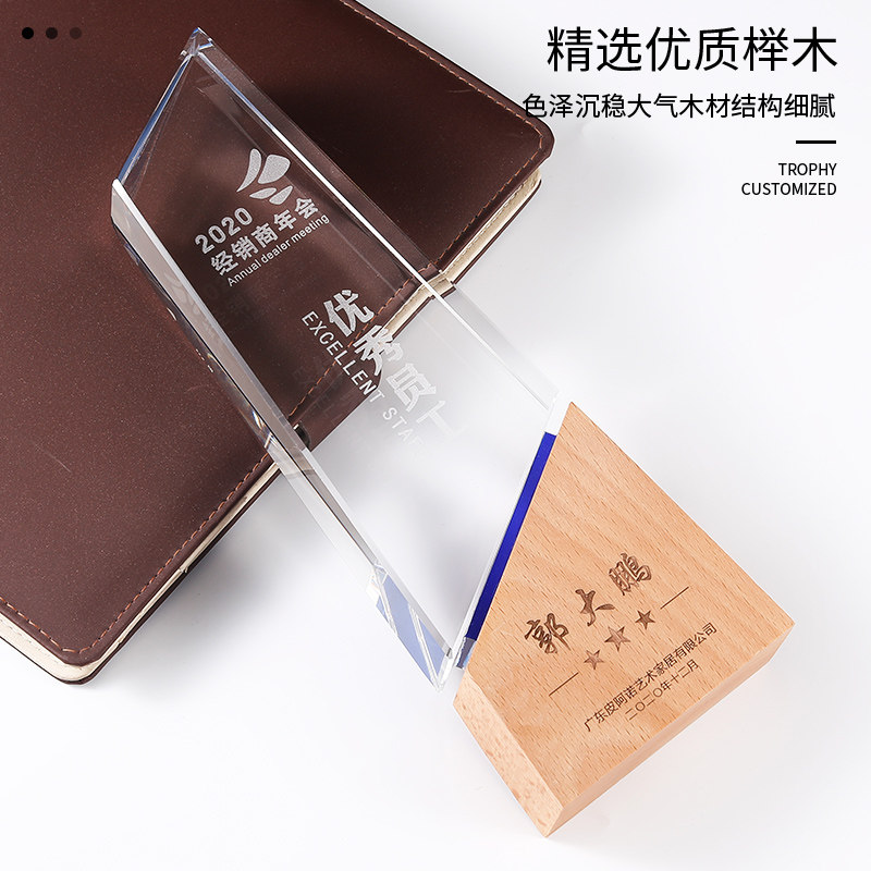 Solid Wood Crystal Trophy Custom Set Making Creative Champion Contest Awards Commemorative Sales Insurance Medal Making Lettering