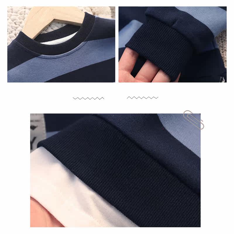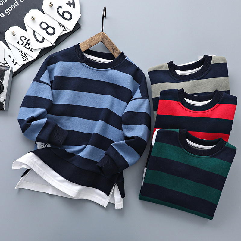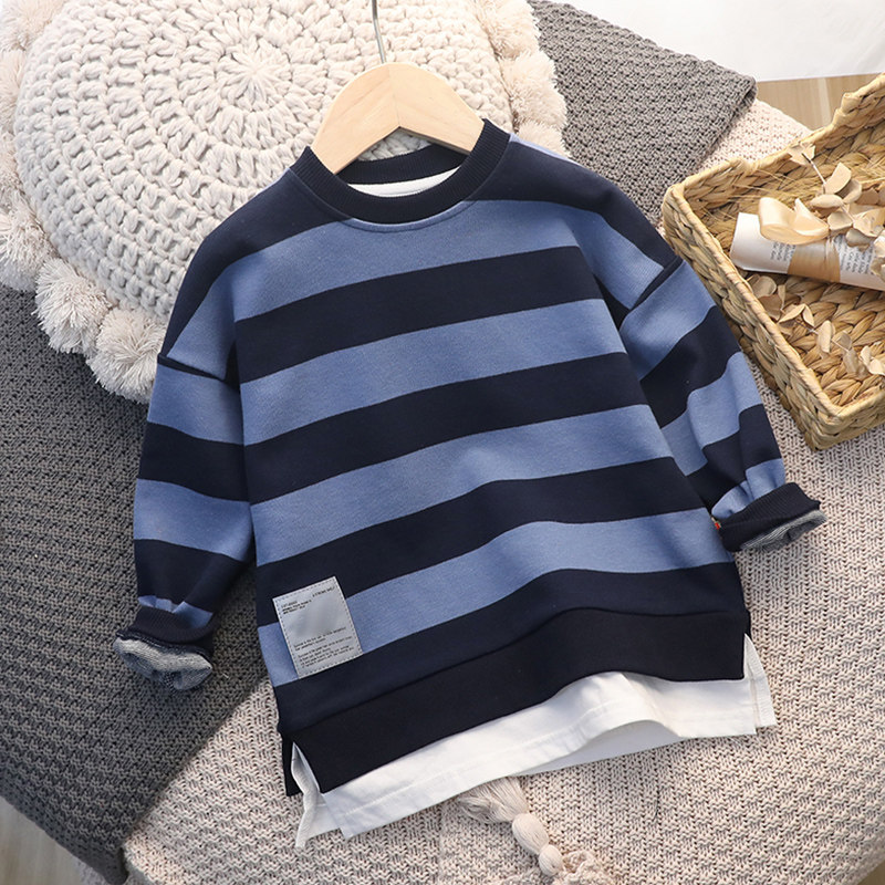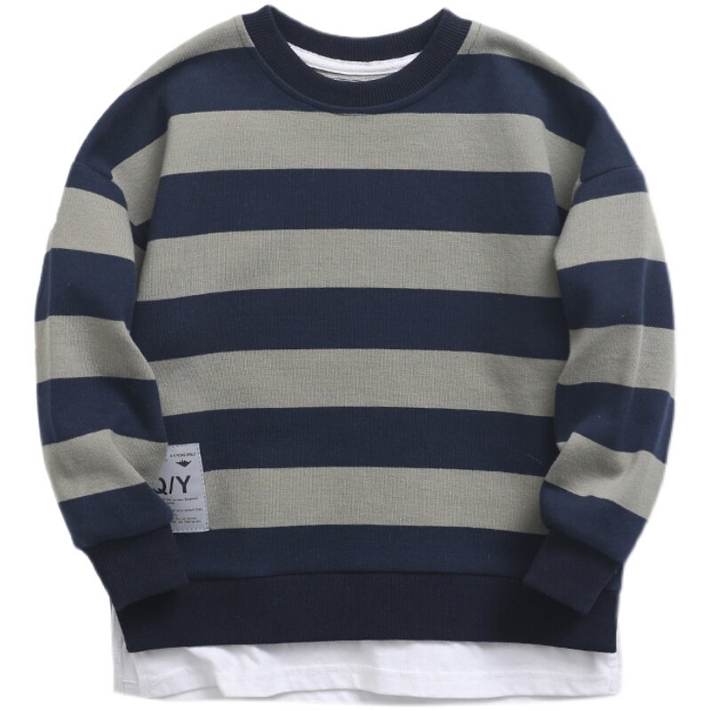 Boys sweater 2021 spring new yarn-dyed striped fake two-piece casual round neck top children's spring and autumn pullover