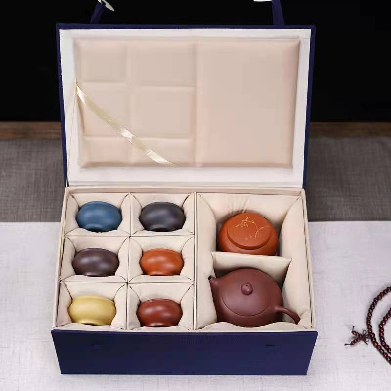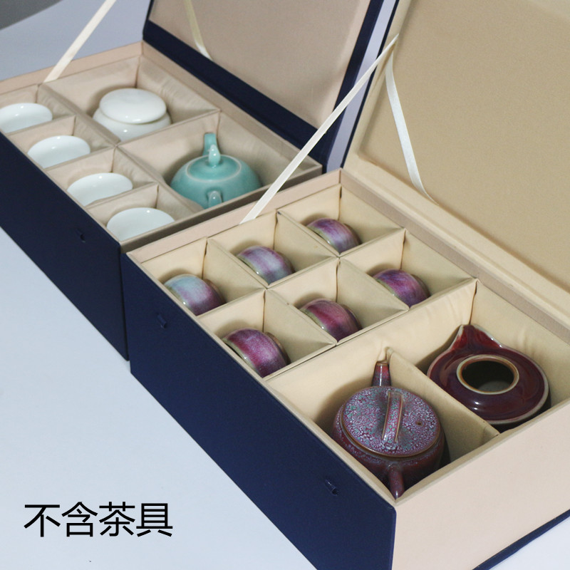 Blue suit brocade box tea set gift box one pot four cups six cups rectangular storage teapot box can be customized