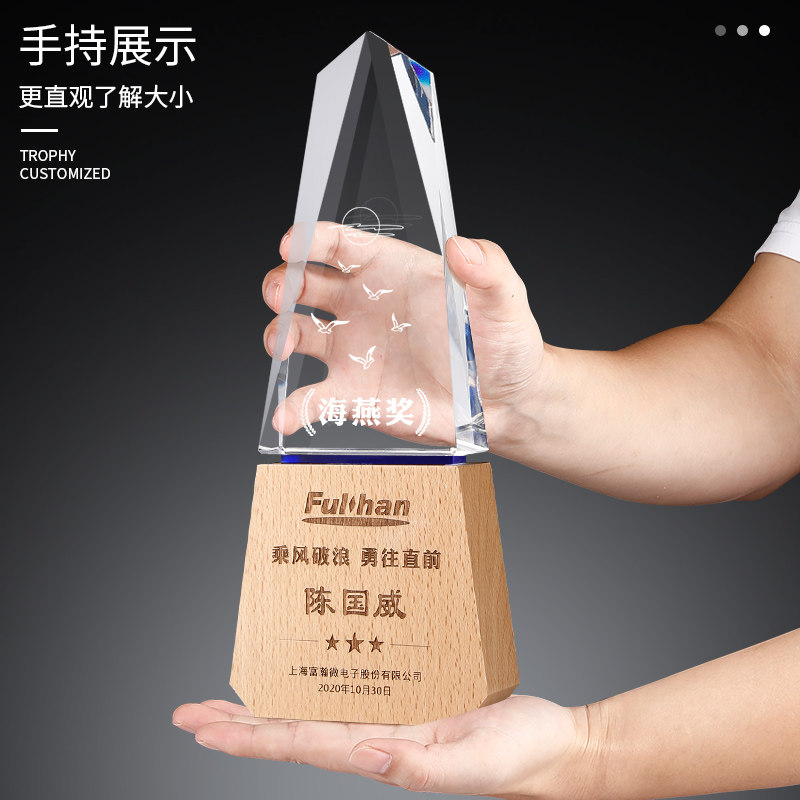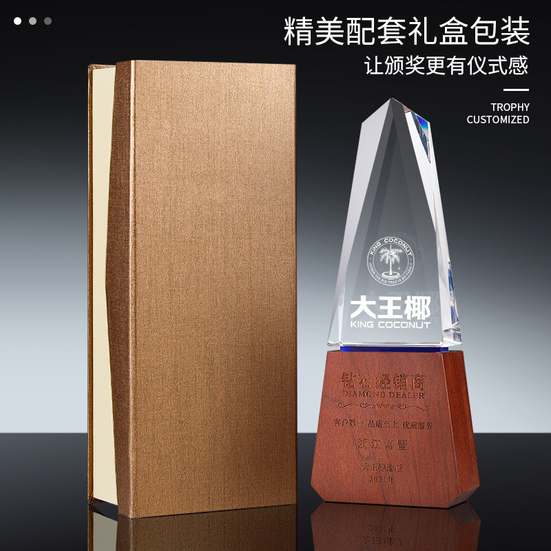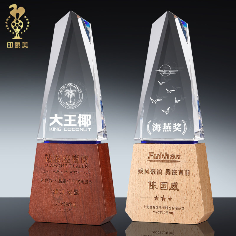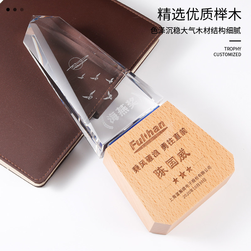 Crystal trophy creative solid wood new iceberg trophy custom medal custom wood lettering excellent staff award