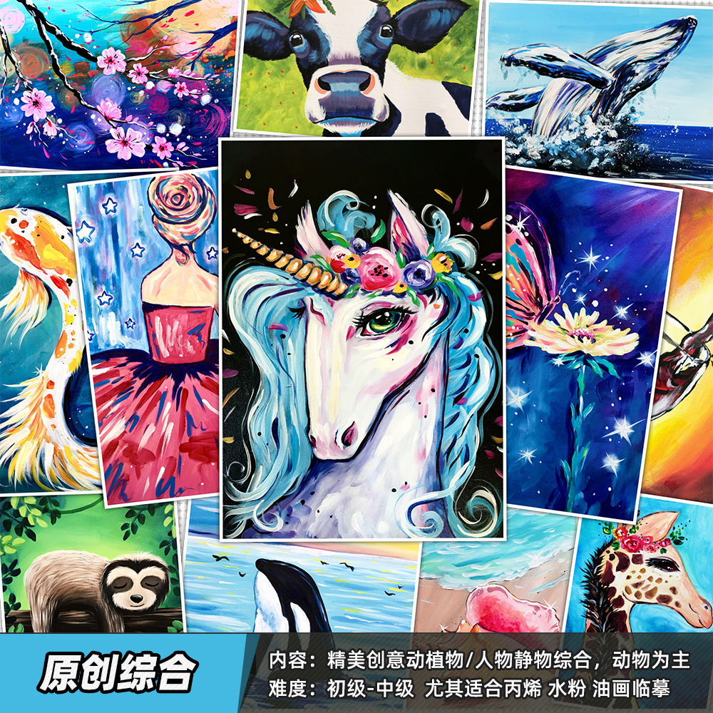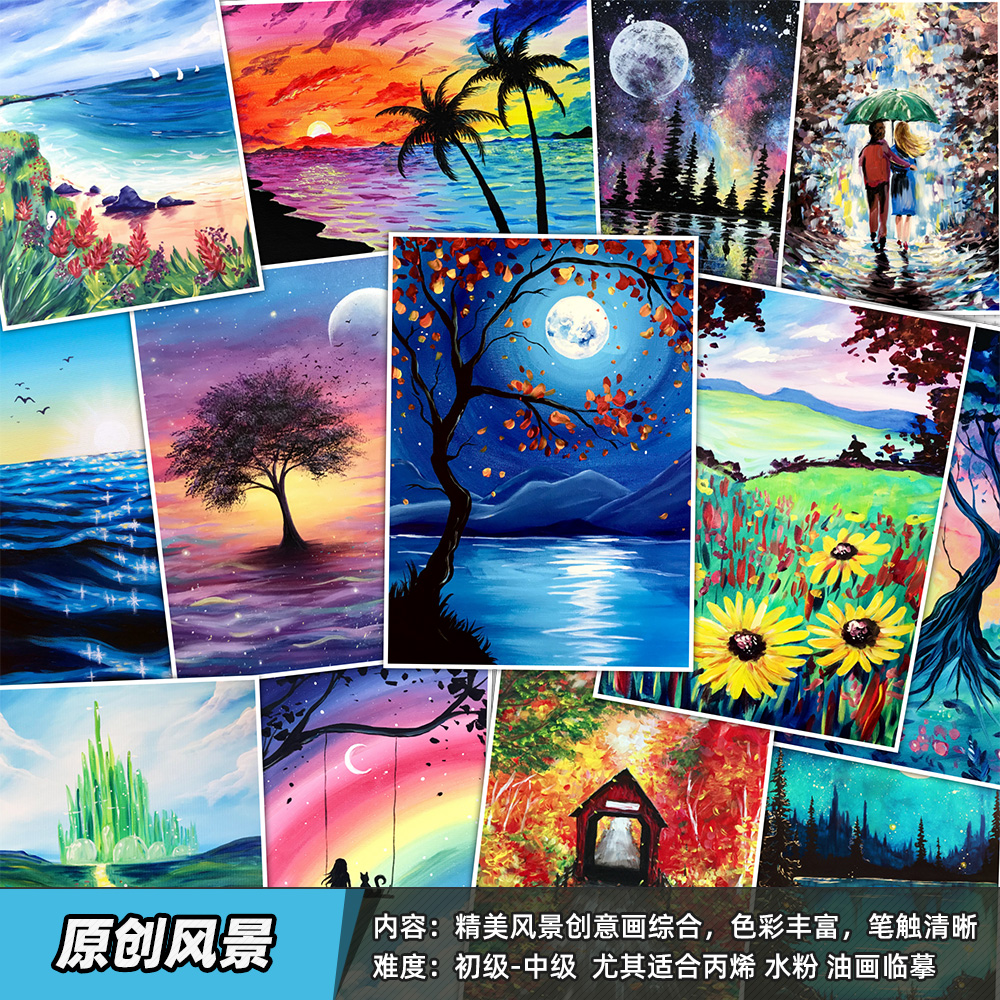 Creative Propylene Water powder Oil Painting Room Painting room Tumanuscript Fan Painting material Scenic animal decoration Painting less Fine Art-Taobao