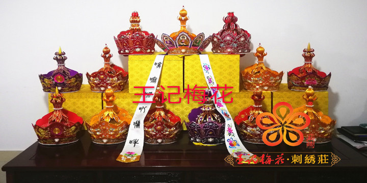 Wang Remember Plum Blossom Embroidery with Luhat Seiko convex dragon Five Buddha Crown Eight Treasures Floating with Su embroidery All hand-made custom Tang monk hat