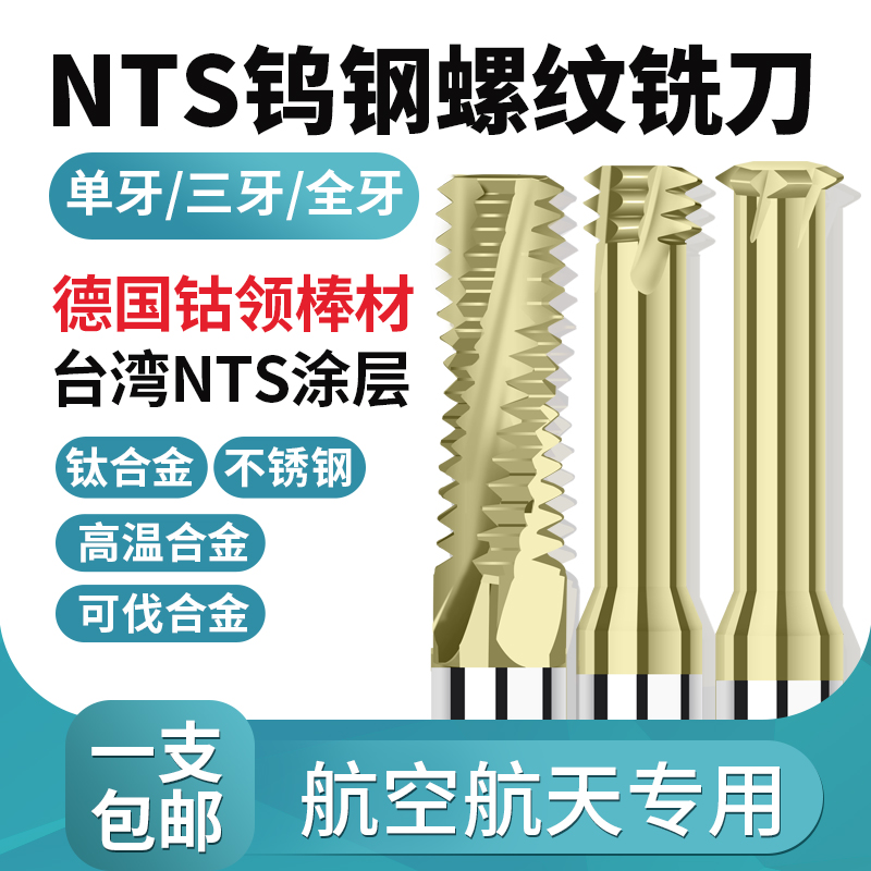 NTS tungsten steel thread milling cutter single tooth three tooth full tooth milling cutter for titanium alloy stainless steel high temperature alloy