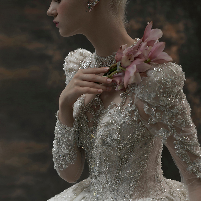 Retro French wedding dress main yarn 2021 New temperament luxury tailing premium long sleeve size wedding palace style