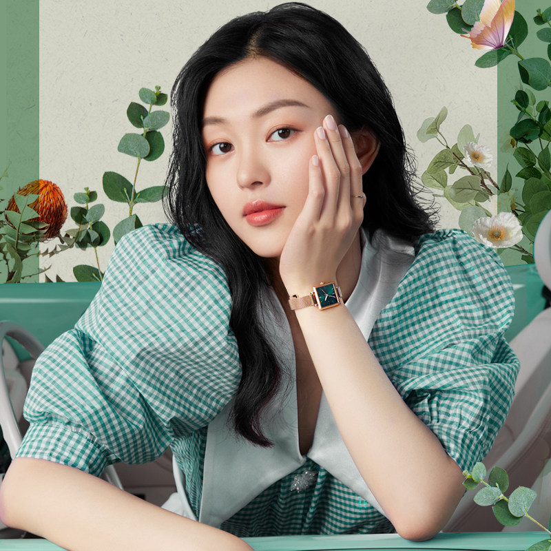 New Roccini watch women's ins style simple temperament fashion small green watch quartz sugar cube women's watch 121452