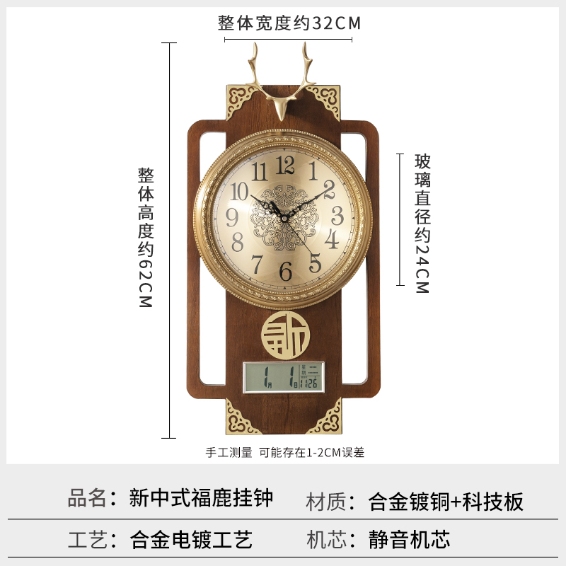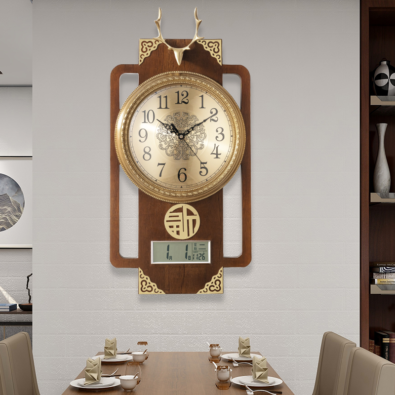 New Chinese wall clock living room home Chinese wind clock simple perpetual calendar mute clock Chinese wall clock