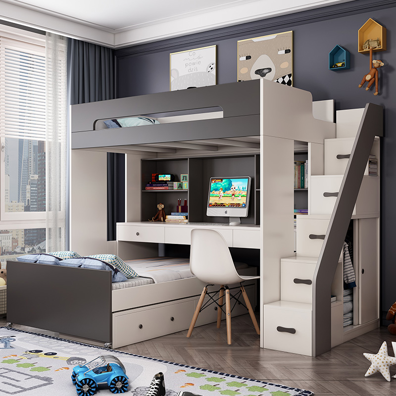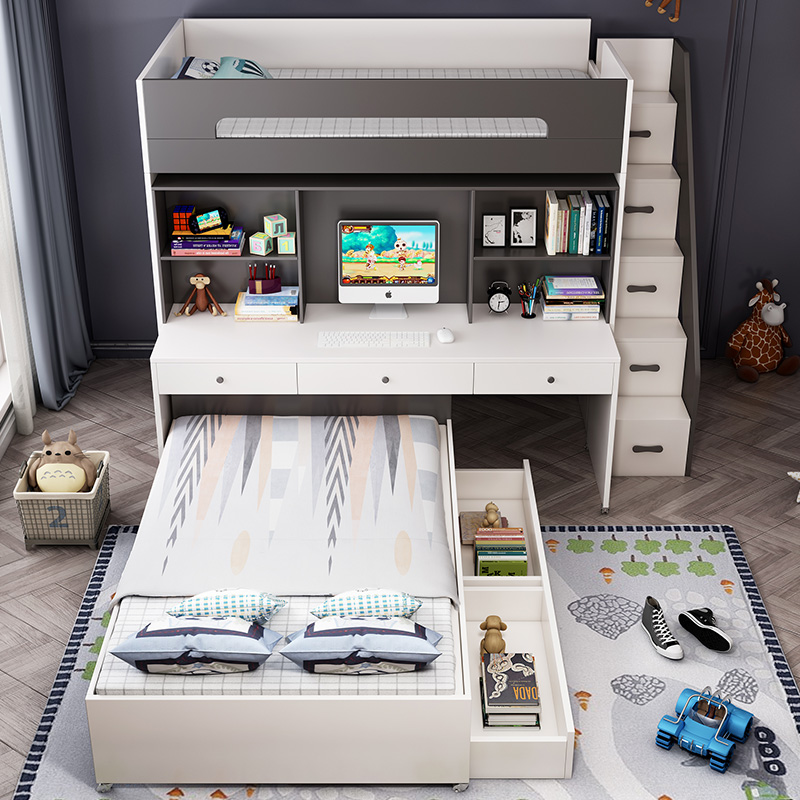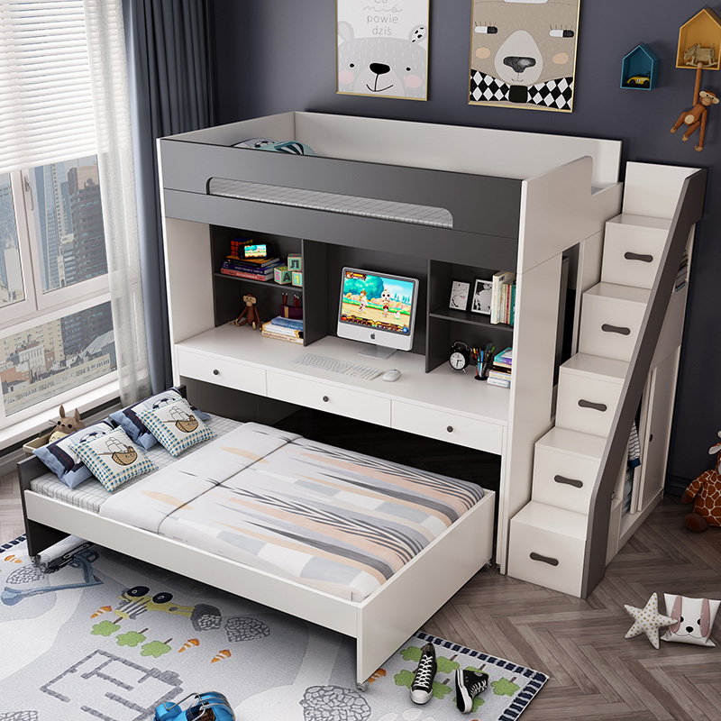 Upper and lower table two-story children's bed desk integrated multi-functional bed small apartment high and low bed learning one bed