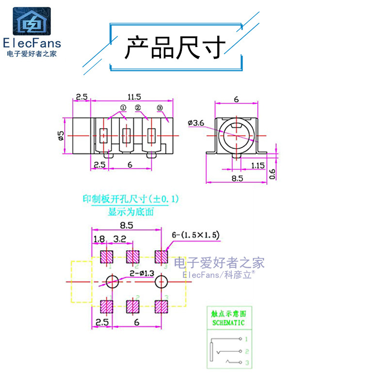 Patch 3 5mm headphone audio socket 6-foot PJ-313 mother seat stereo dual track earplug
