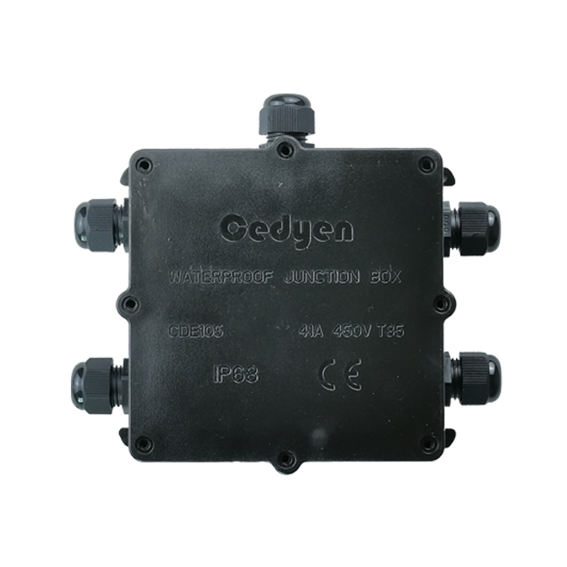Waterproof junction box outdoor five-way one-in four-out rainproof black shell with terminal connector cable docking protection
