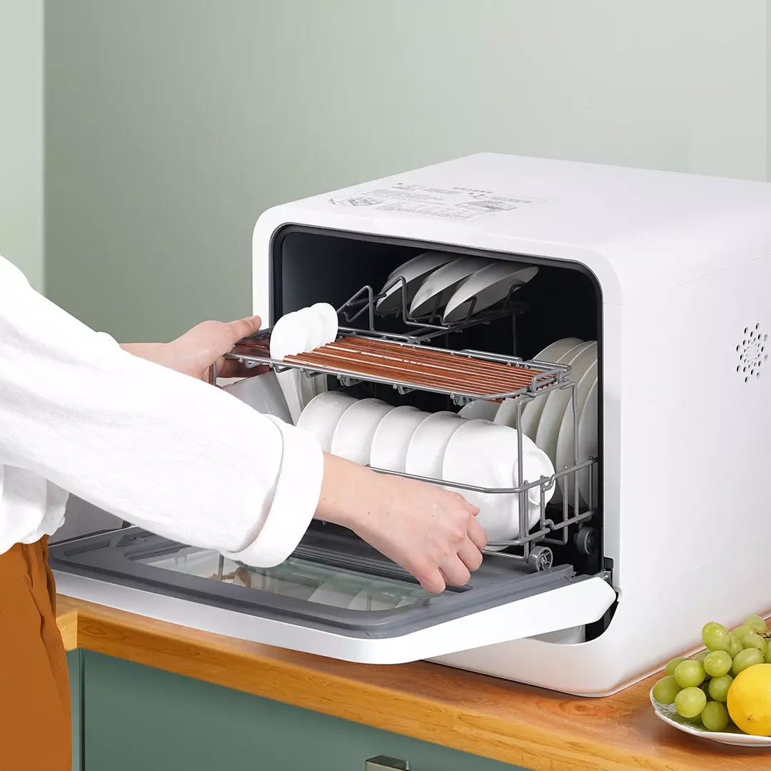 Small rice white circle kitchen 6 sets of intelligent free-to-install dishwasher fully automatic germicidal drying small integrated brush bowl machine