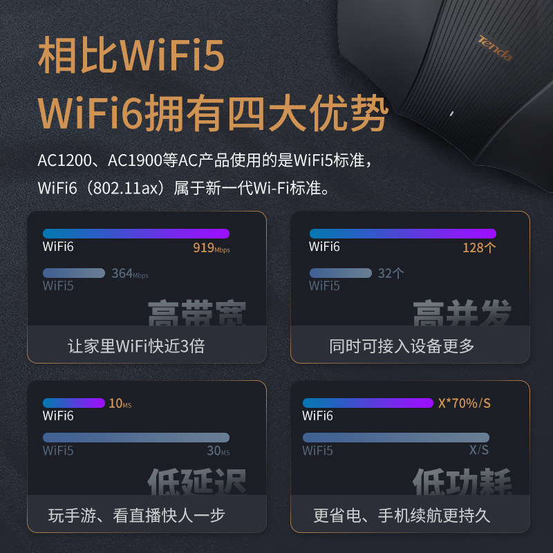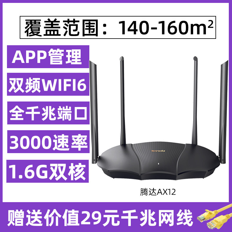 (daily shipment) Tenda Wifi6 wireless router Household Gigabit port 5G dual frequency 3000M wireless pine number of high power enhancers through the wall AX12