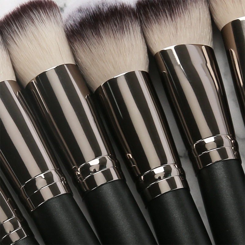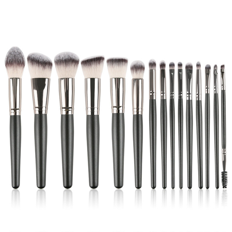 15 sets of three-color hair flash silver black wooden handle loose powder makeup brush beauty tools face brush makeup brush
