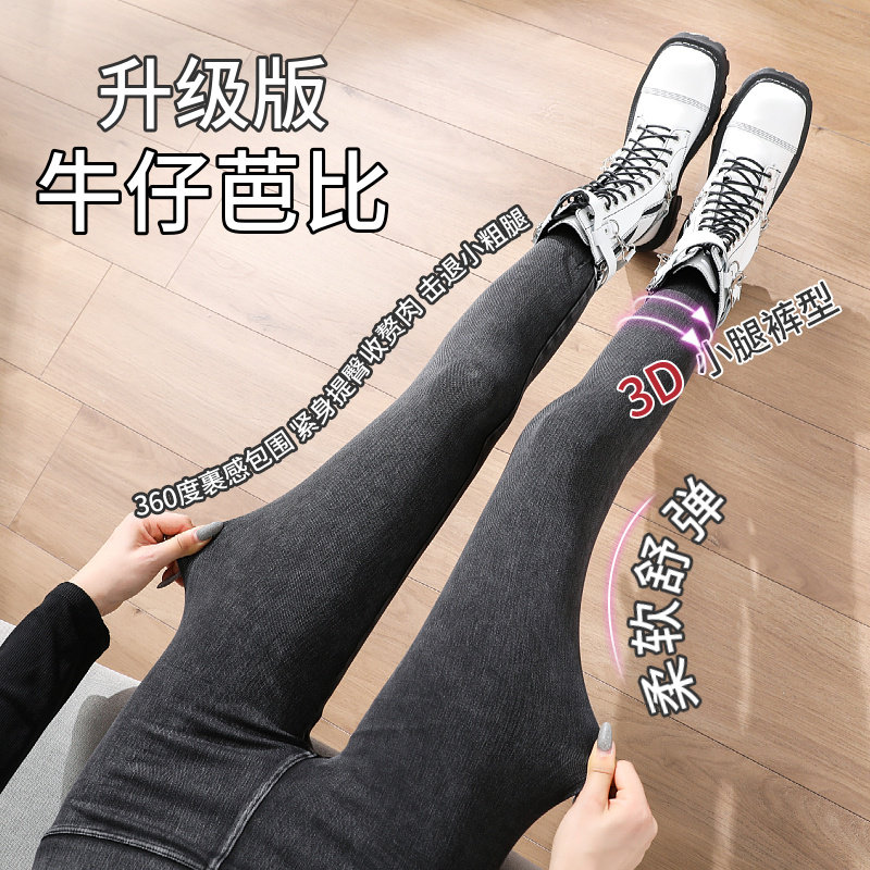 Plush denim Barbie leggings women wear thick high-waisted belly lifting shark pants look thin and tight autumn and winter