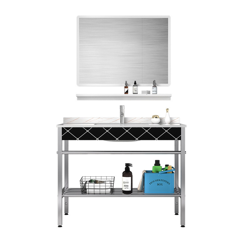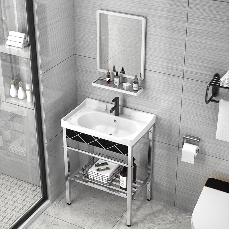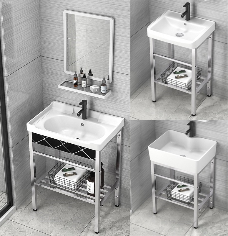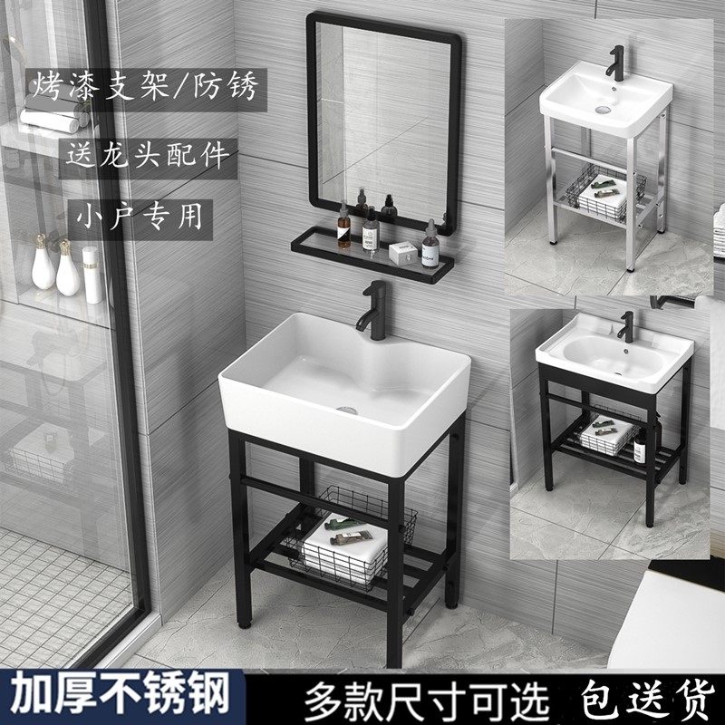 Balcony floor-floor washbasin minimalist stainless steel bracket Makeup Room Ceramic Washbasin Cabinet combined table basin