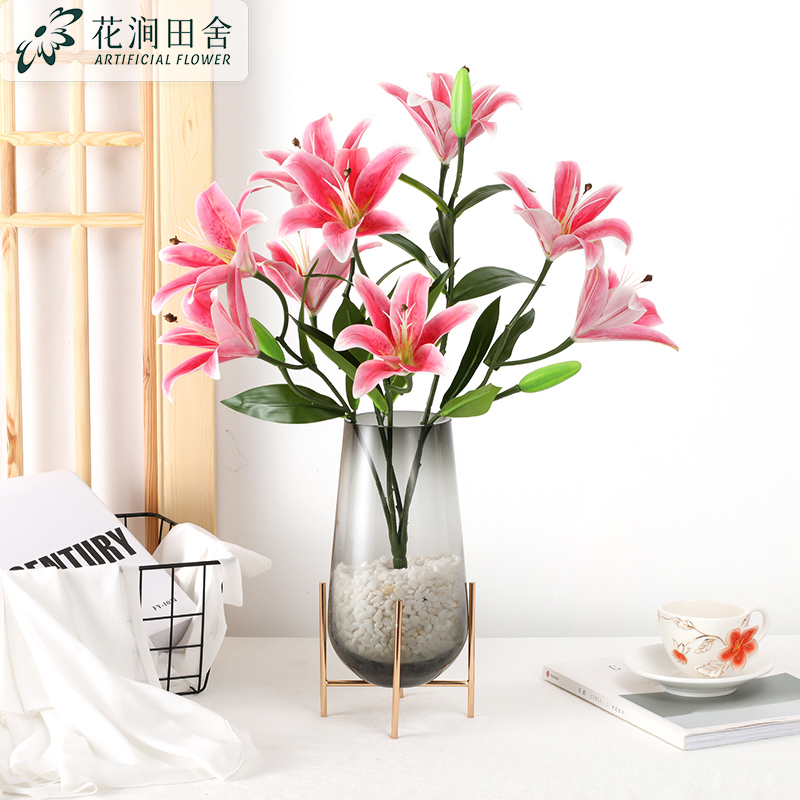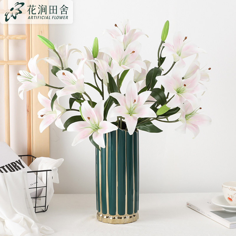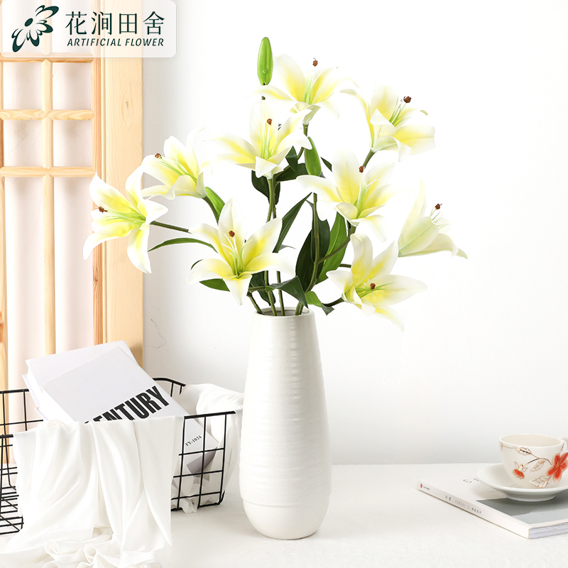 Lily simulation flower high-end living room decoration TV cabinet table fake flower decoration flower arrangement flower decoration high branch bouquet
