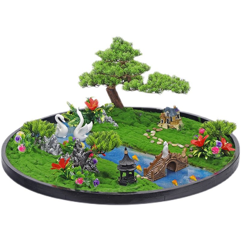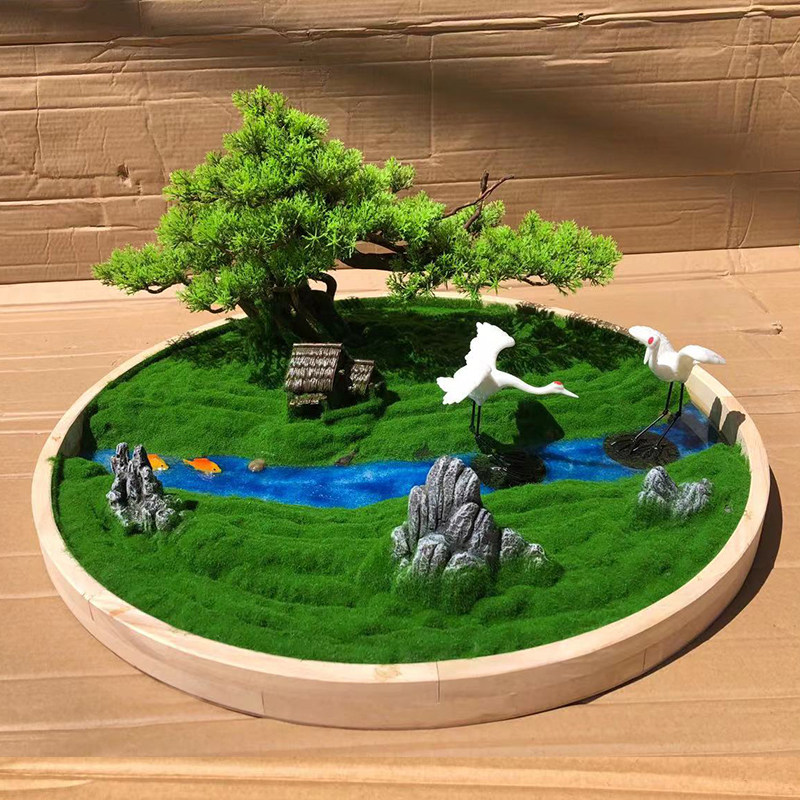 Hotel round table middle decoration light luxury turntable decoration high-end desktop landscaping handmade new Chinese table flower arrangement - Taobao