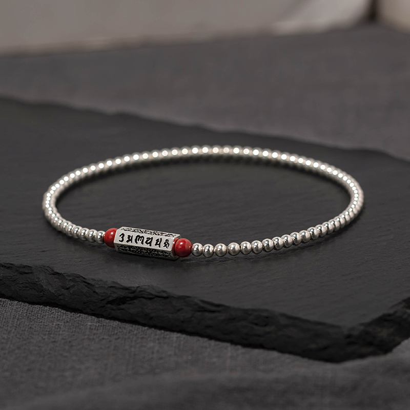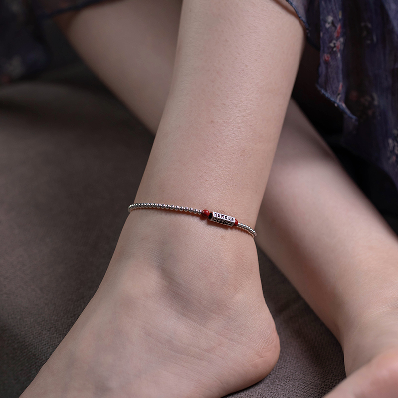 Dashantang cinnabar sterling silver retro personality jewelry simple silver bead foot ornaments six-character mantra good luck anklet girls summer