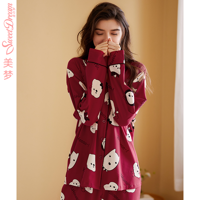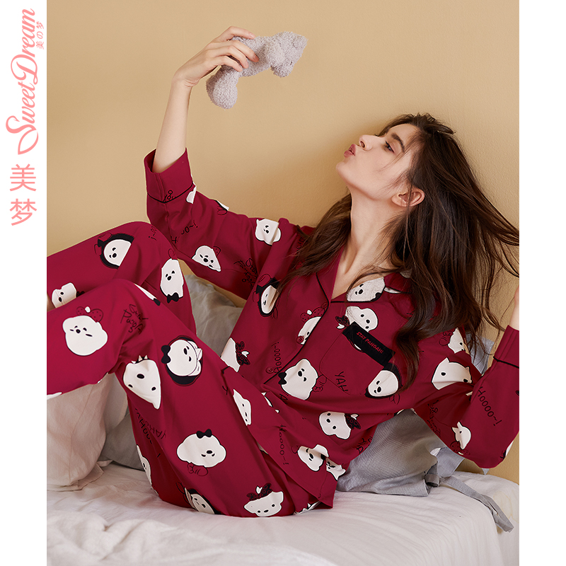 Cure the little white dog joint name dream year of the ox red pajamas women's long-sleeved cartoon home clothes spring and autumn suit