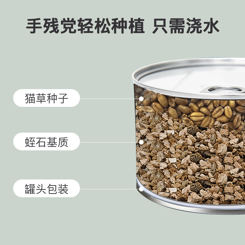 EZ cat grass canned seeds have been planted in potted catnip to remove hair ball lazy hydroponics planting ready-to-eat cat snacks