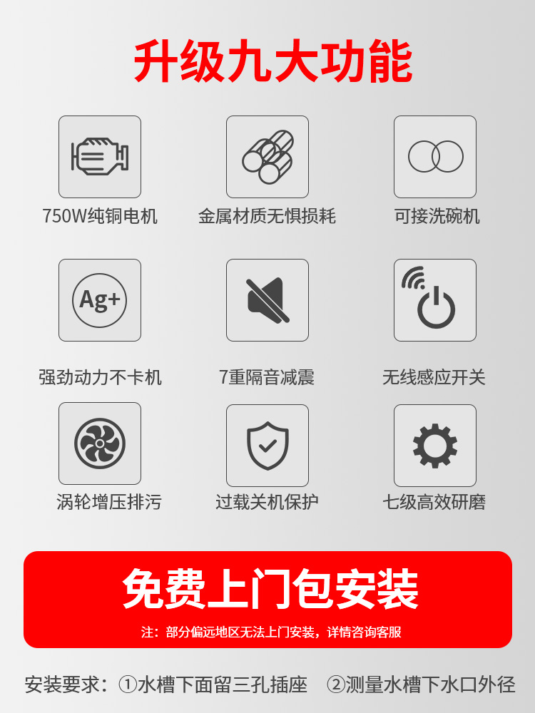 German Huma Home Kitchen Waste Processor Kitchen Waste Food Sink Muller Automatic 750w High Power H