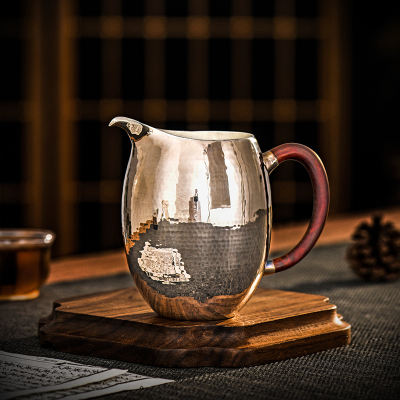 Silver Age Sterling Silver Gongdao Cup 999 Hammer pattern hawk mouth tea dispenser Chinese-style household tea set special public cup for brewing tea