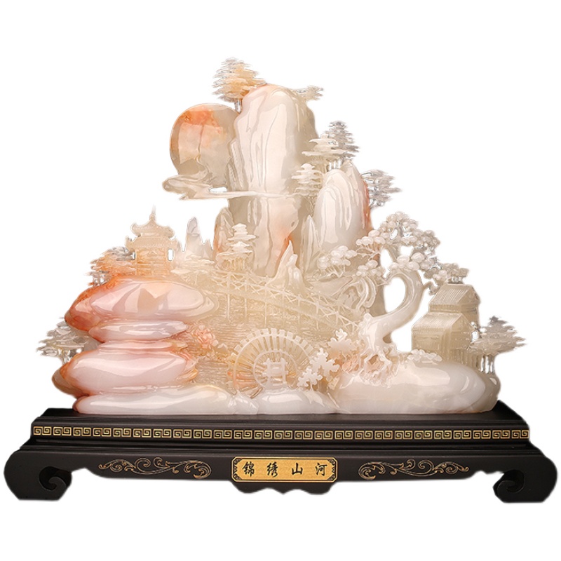 Chinese natural jade landscape ornaments pure handicrafts office living room porch desktop housewarming daily gifts