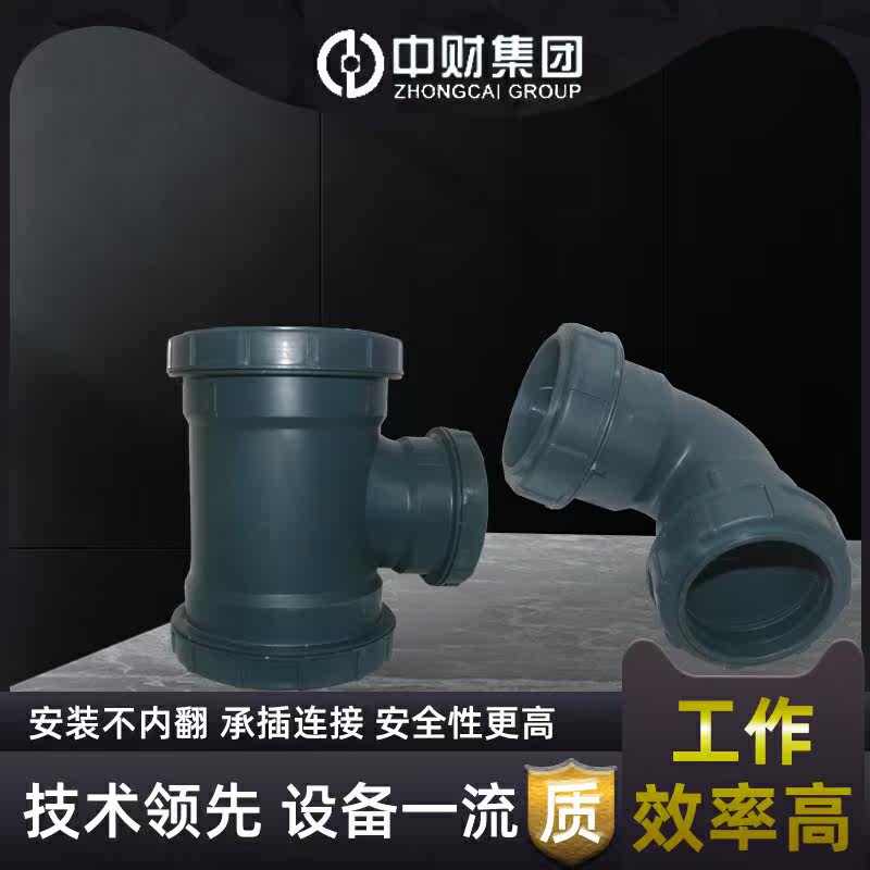 High temperature resistant Zhongcai PP ultra-quiet drain fittings 50 direct 110 three-way 75 elbow straight-through sewage fittings