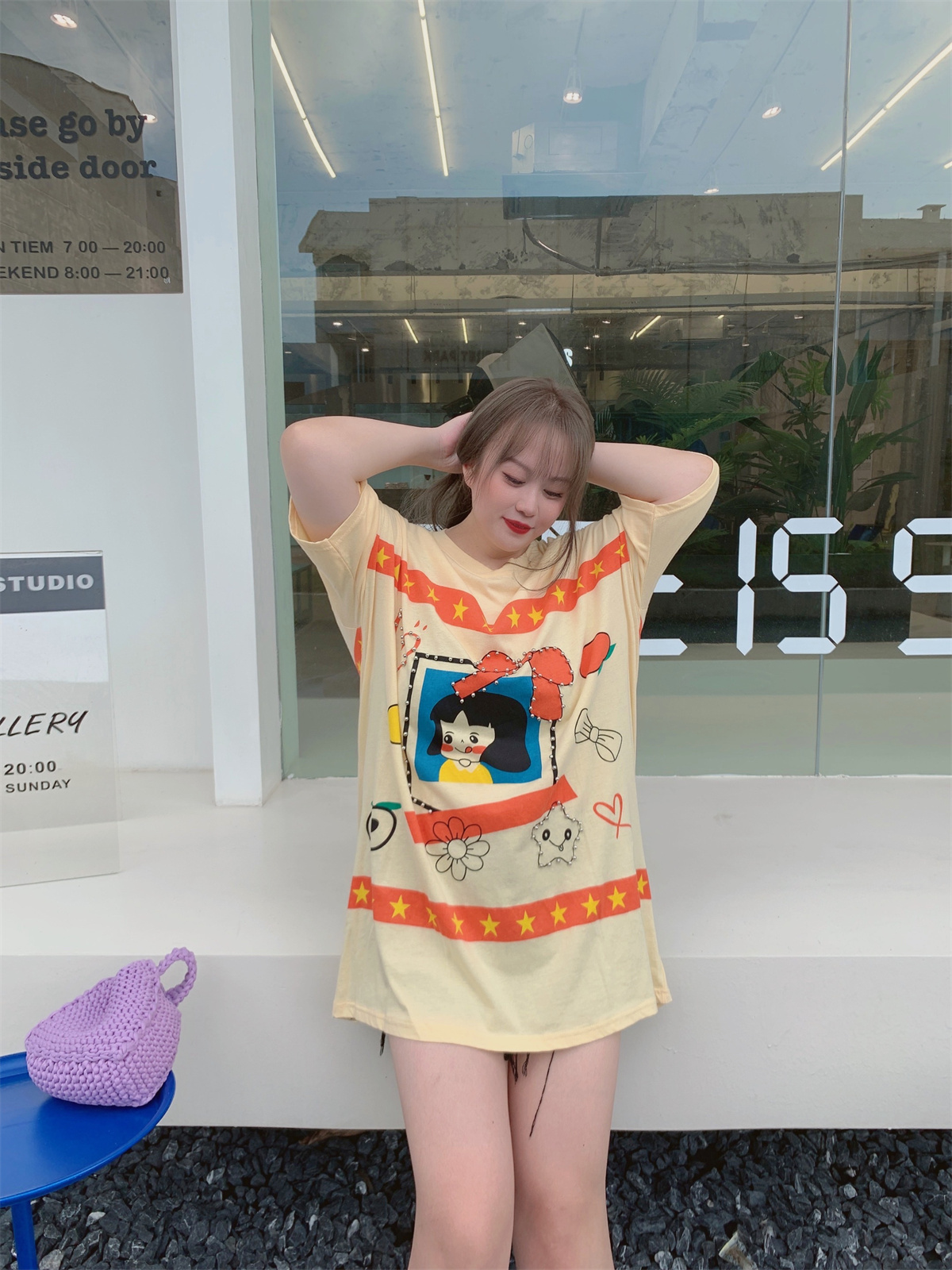 2022 Summer new large size Dress Loose large T-shirt cute Aging Nail Beads Printed Student Casual Blouse