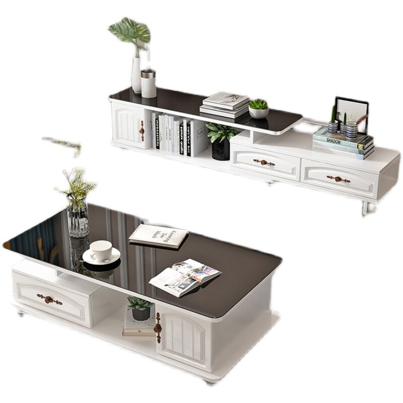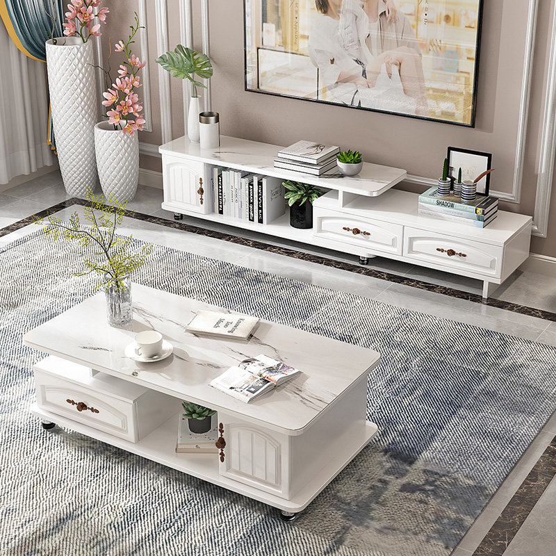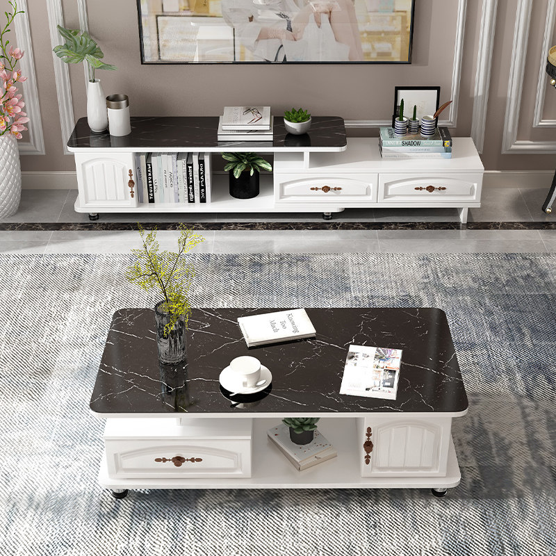 European-style rounded corner porcelain surface tea table TV cabinet combination simple modern set home living room small apartment 305 models