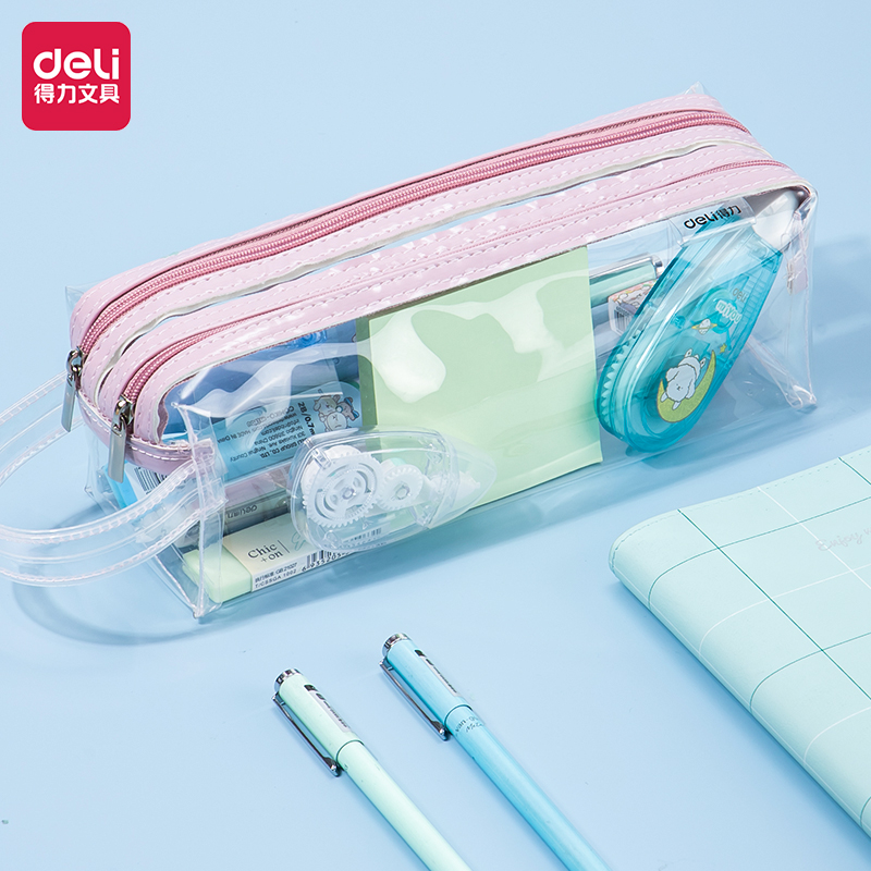 Able Double Layer Transparent Pen Bag Large Capacity Female Brief Junior High School Students High Face High School Students Day Series Stationery Bag Writing Case Ins Tide Girls Exam Special Middle Examination Triangle Bag
