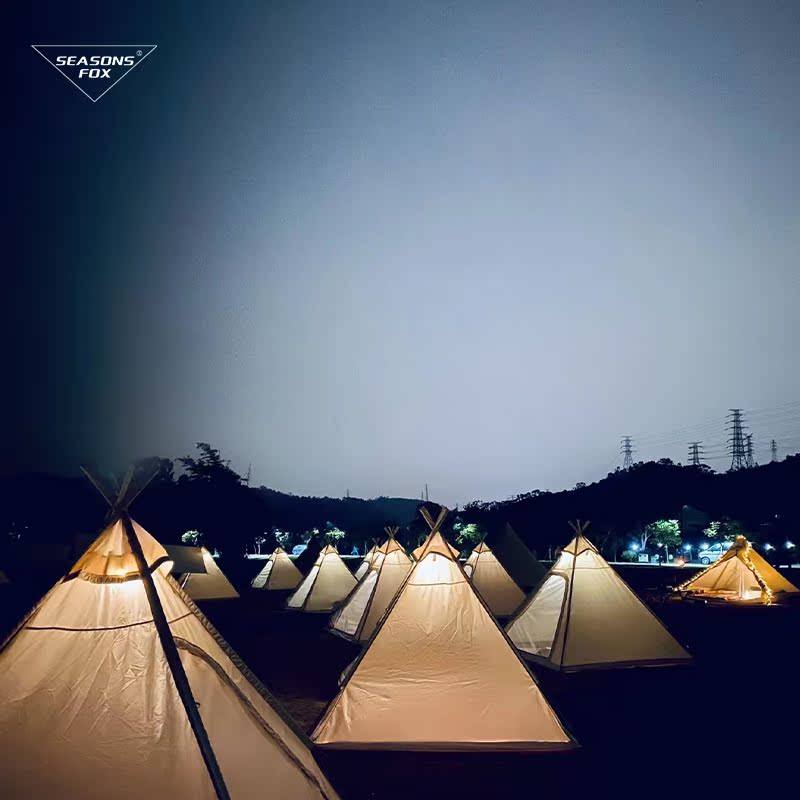 Four seasons fox Indian tent outdoor exquisite camping multi-person pyramid canopy cotton rain-proof thickening easy to store