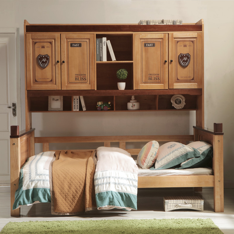 Walnut Wardrobe Bed Wood Wax Oil Solid Wood Top Cabinet Bed American Cabinet Bed Multifunctional Bookshelf Bed Children Bookcase Bed