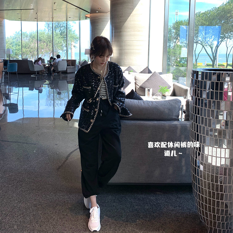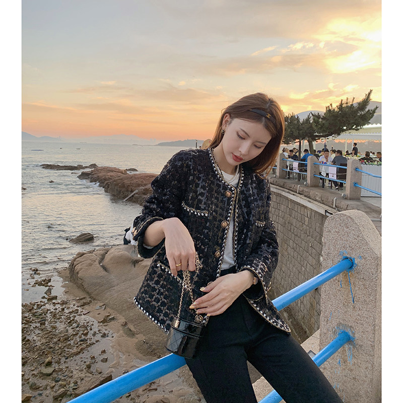 In momo2021 new early autumn lazy style coat women's fashion temperament round neck top single breasted design trend