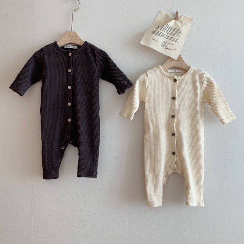 ins22 autumn Korean baby comfortable threaded long-sleeved jumpsuit for men and women baby cotton home bag fart romper