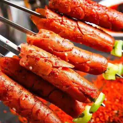 Fuyu starch intestines roadside stall Fuyu starch intestines 100g Shandong Fuyu iron plate roasted sausage Fuyu Ha red roasted sausage