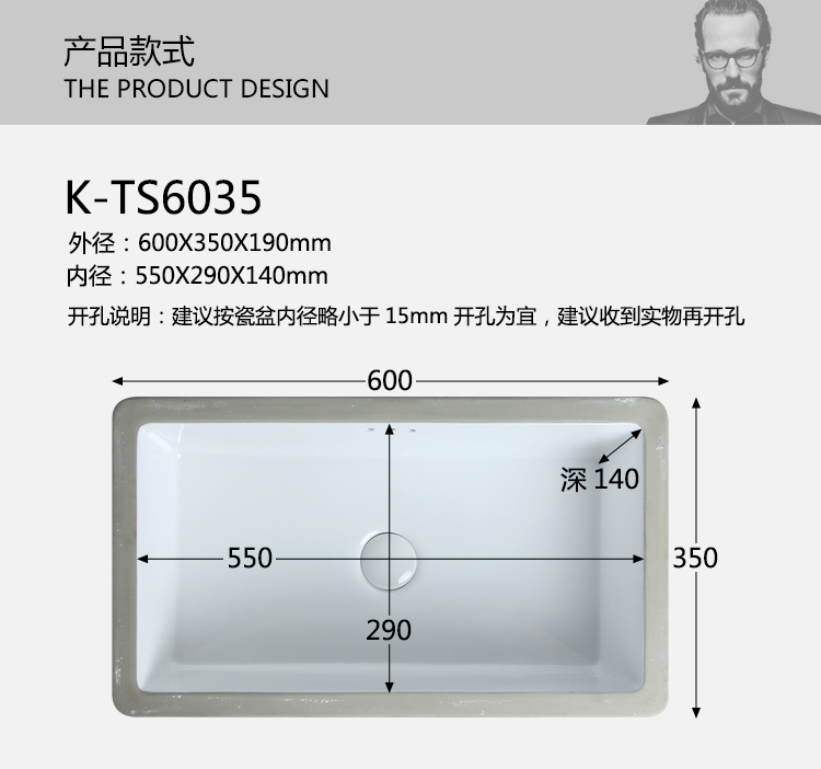 600 350 narrow and long under-counter basin 24-inch washbasin powder room slender strip embedded ceramic washbasin single
