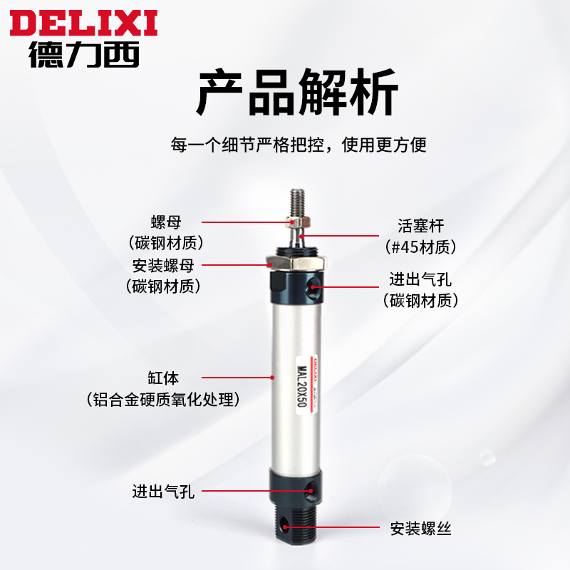 Deri West small pneumatic mini cylinder aluminum alloy MAL16-25-50-75-100-150-200-250-S