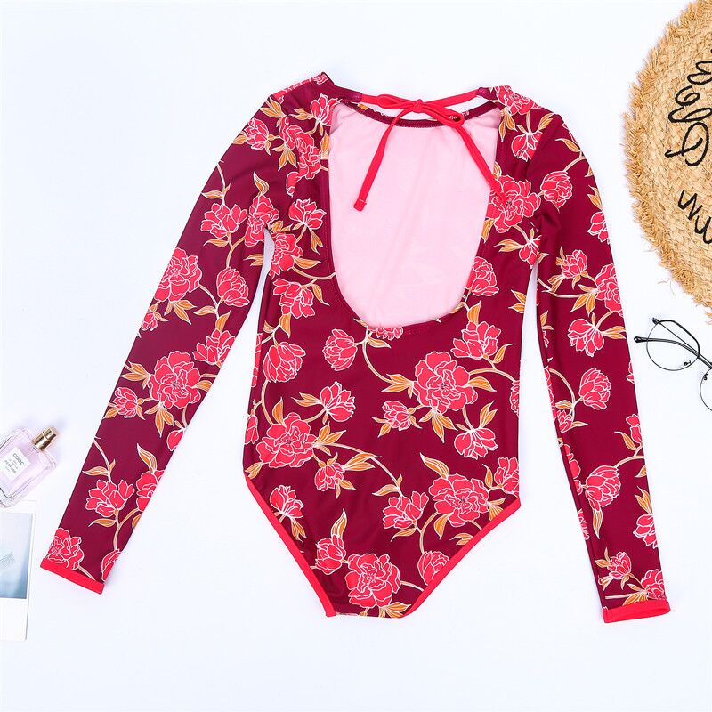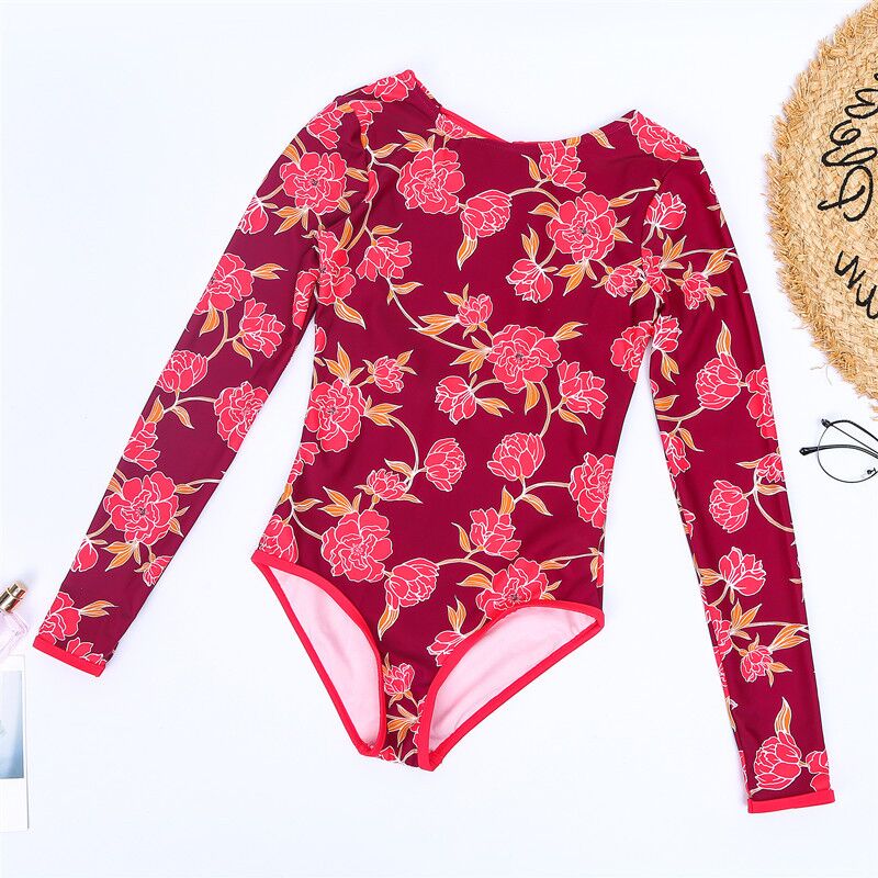 Export foreign trade girls long sleeves swimsuit in the big boy 7-16 girls flower color sunscreen quick-drying student surf suit