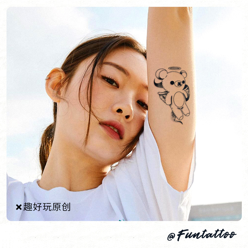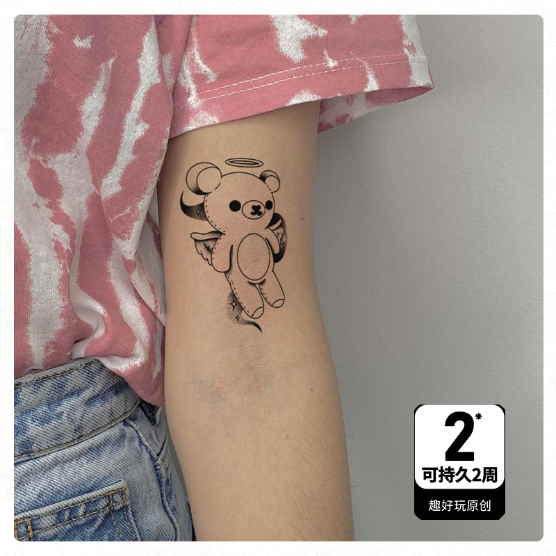 Fun Fun Angel Bear Grass Ben Juice Stick Tattoo Tattoo Piercine Waterproof Persistent Female Couple Cartoon Pattern Sticker Male