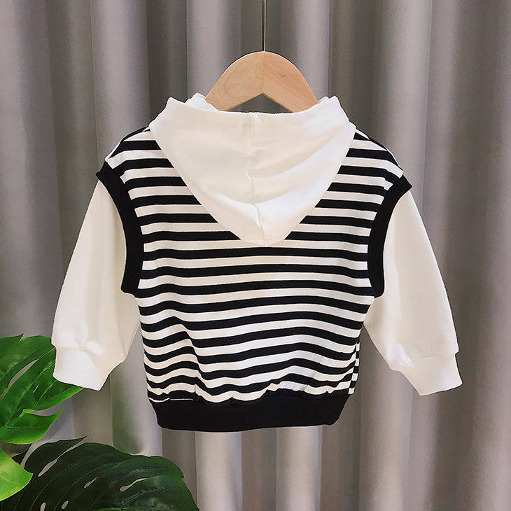 Striped black white thick cotton T light blue jeans striped black and white sweater suit