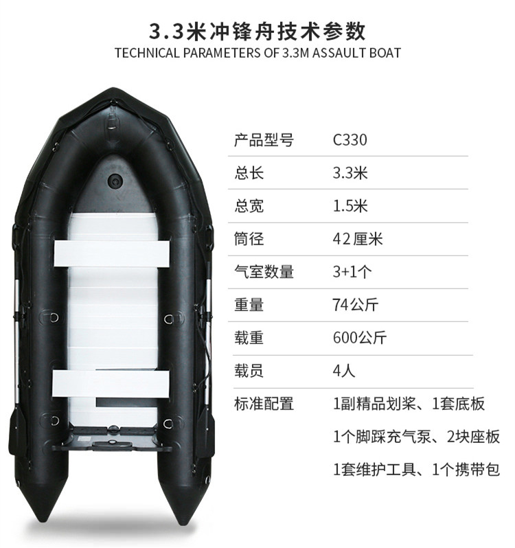 Black King Kong marine assault boat aluminum alloy bottom plate thickened rubber boat hard ground rubber boat 1 2 thick Luya fish boat