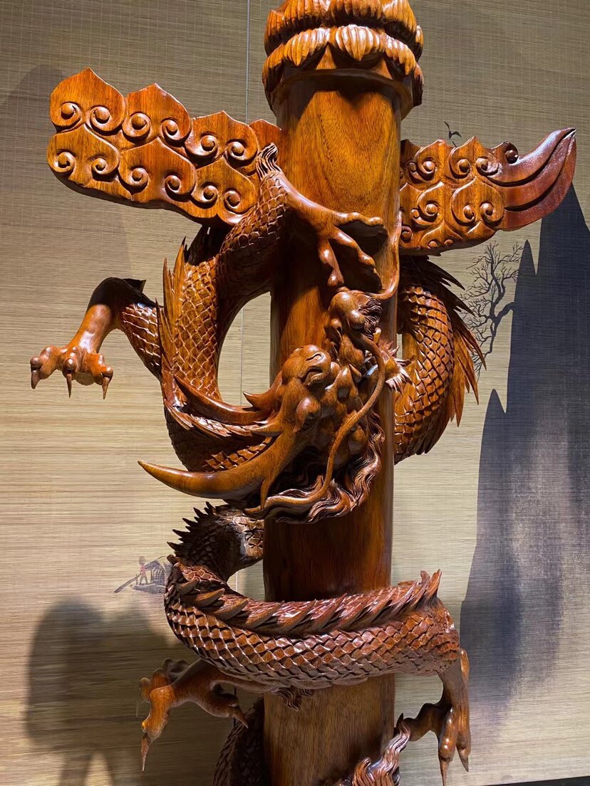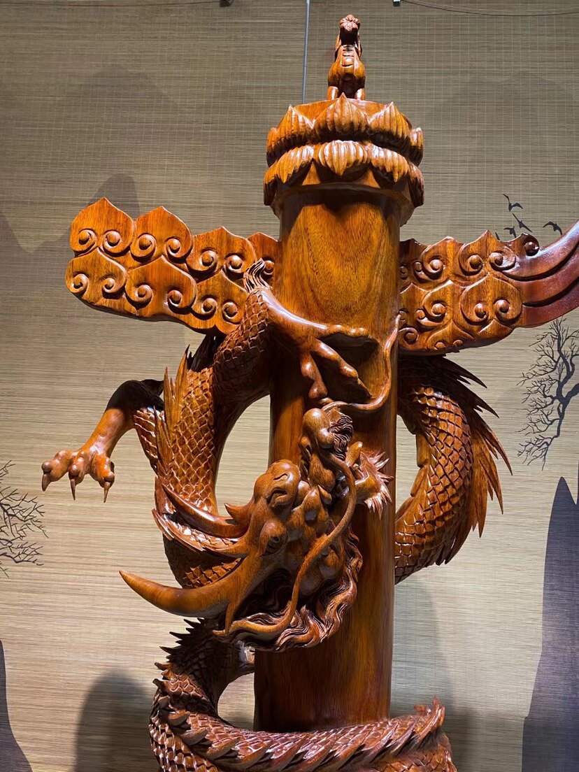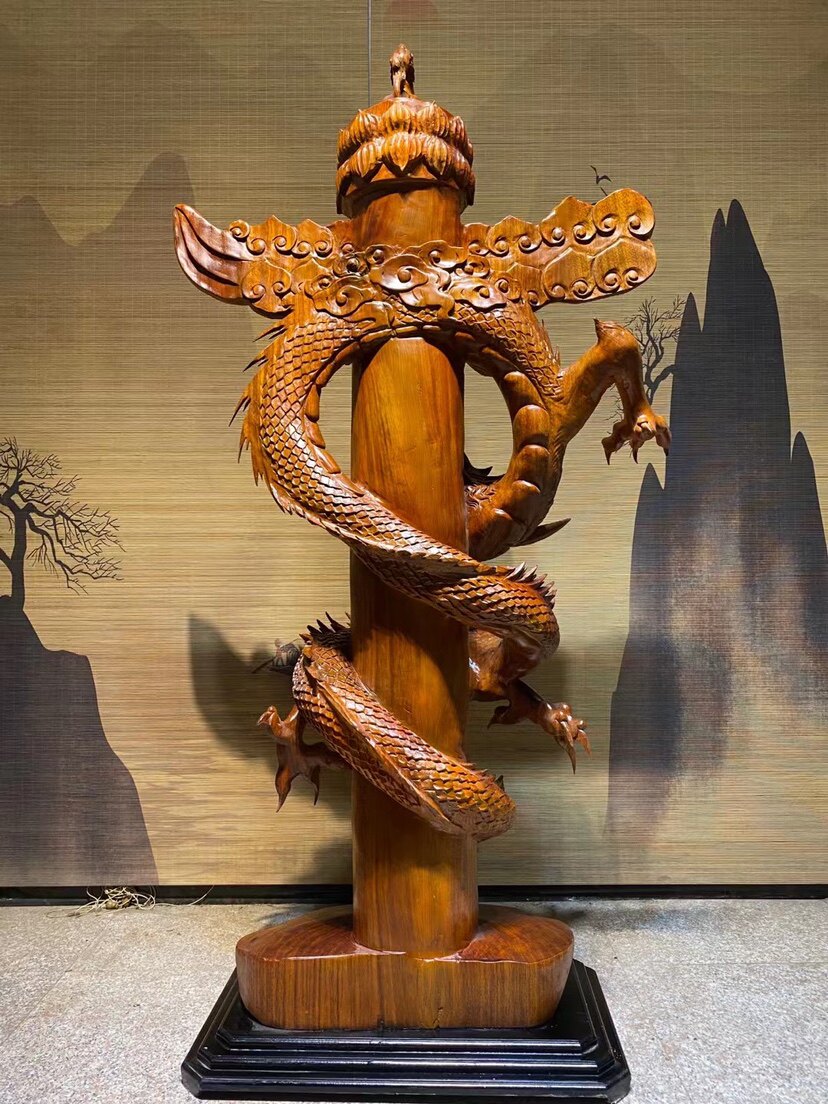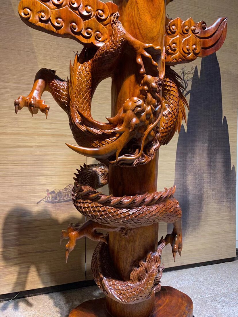 African rosewood wood carving animal carving Chinese dragon feng shui column root carving living room length 100 width 47 height 198 cm