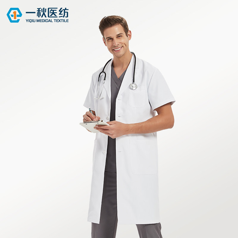White coat long-sleeved doctor's clothes men's and women's short-sleeved summer beauty salon oral medical beauty work clothes high-end printing