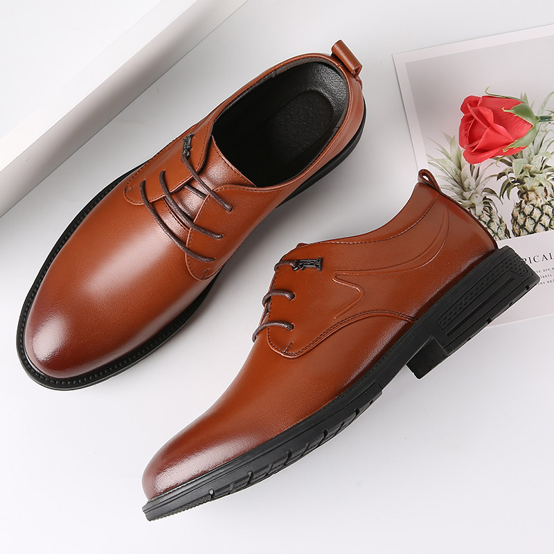 Leather shoes men's winter business men's wedding leather shoes casual inner heightened genuine leather dress British groom men's shoes breathable