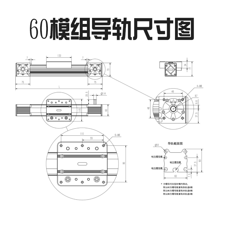 3M5M rubber 60 synchronous belt belt synchronous wheel set linear module sliding table guide rail can be grouped gantry