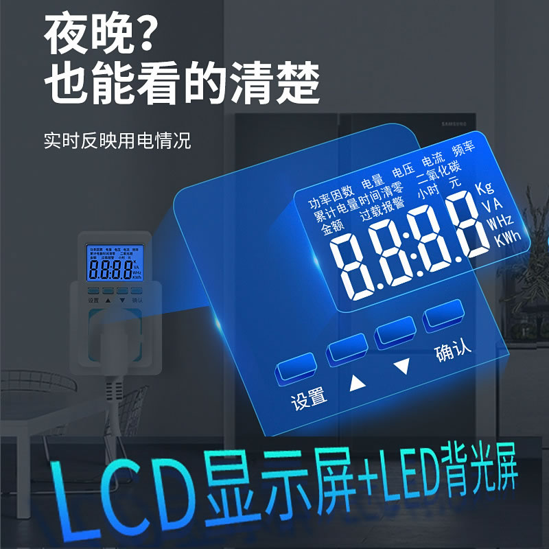 Power Consumption Tester Power Display Socket Power Monitor Electric Meter Electric Quantity Billing Degree Air Conditioning Detector AC