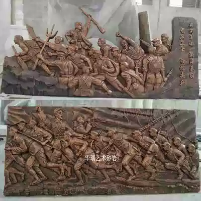 Factory direct custom glass fiber sandstone red sculpture imitation Copper Red Army Long March relief Court exterior wall relief