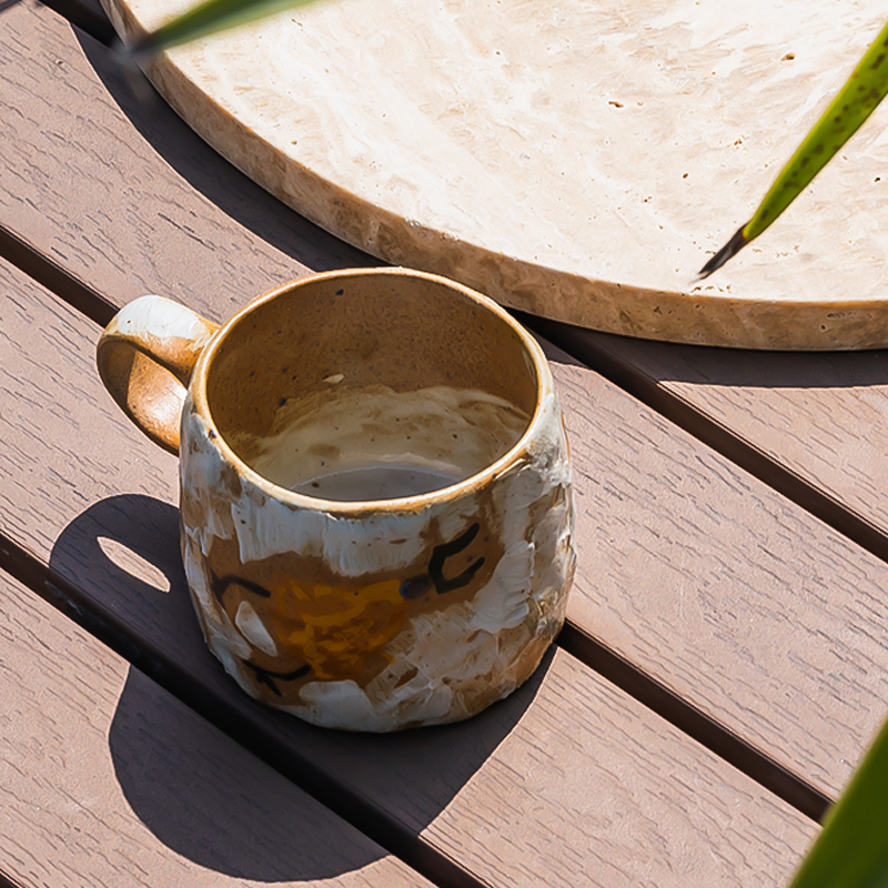 Cartoon Abstract Handdrawn Makeskin Oil Painting Coffee Cup Living Room Black Hangtian Painting Room