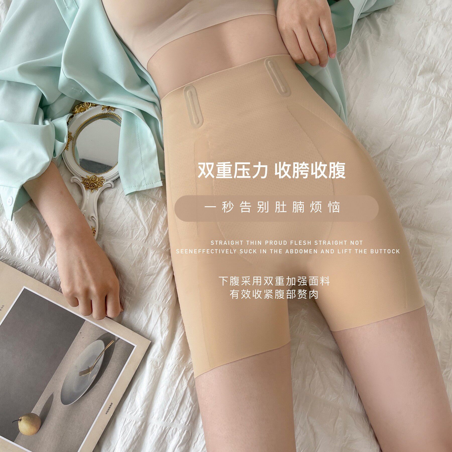 Japan's hip-lifting belly pants seamless safety pants women's plastic waist large size suspension pants summer anti-light leggings
